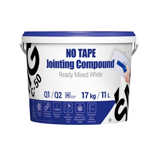 SMIG C-50 is een kant-en-klaar wit voegmiddel voor gipsplaten. Scheurvrij, direct te gebruiken en geschikt voor naden, gaten en wandafwerking.